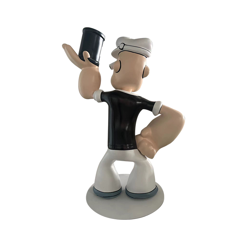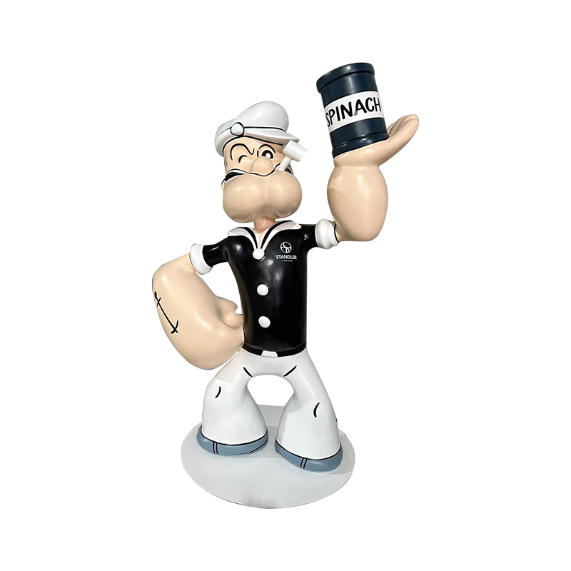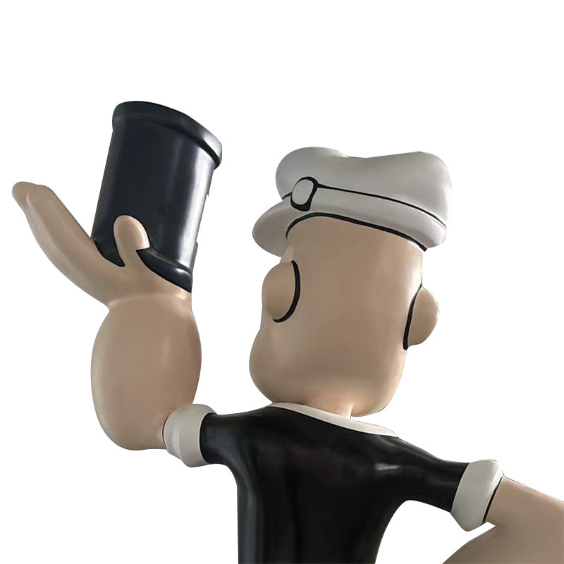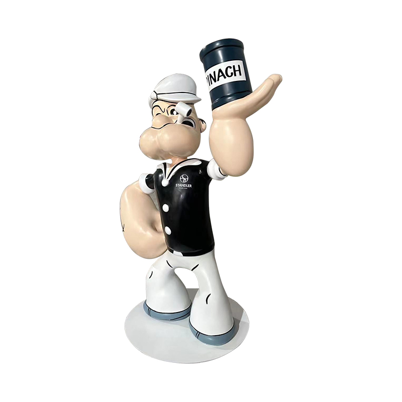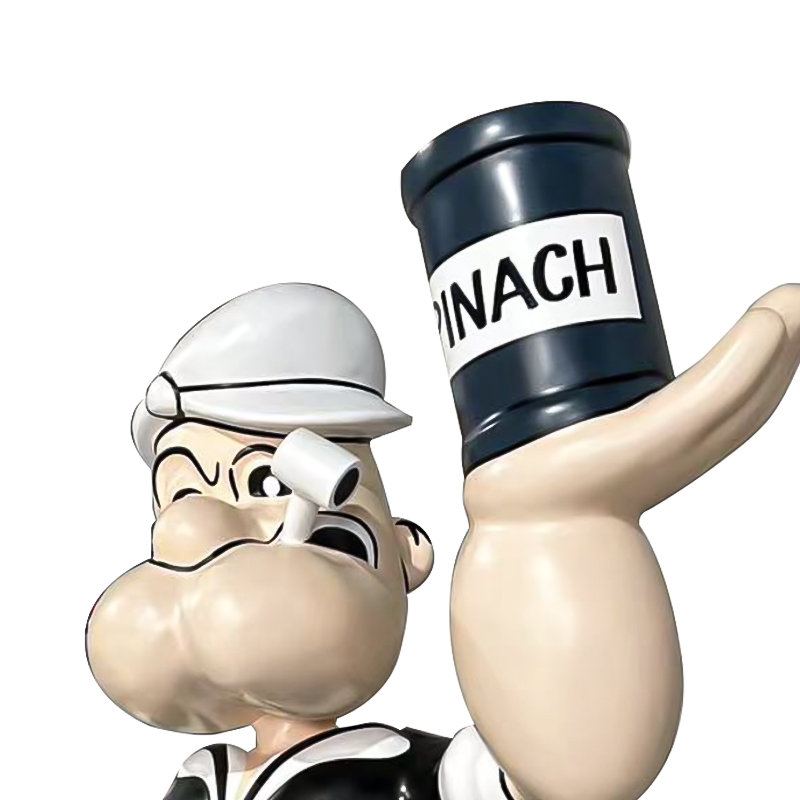 Nasza firma dostosowała kreskówkową rzeźbę Popeye, z rozmiarami, kolorami i logo dostosowanymi do wielkości klienta.